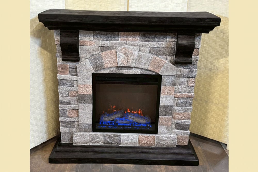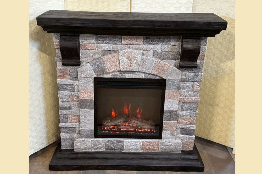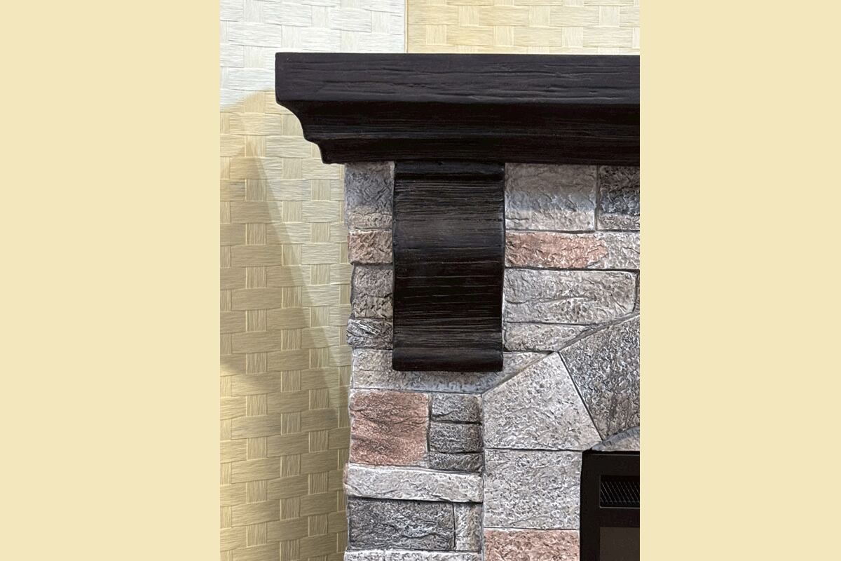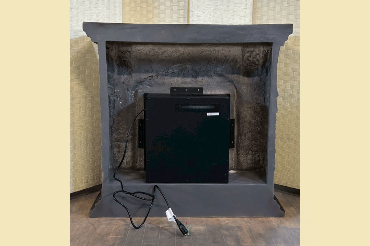 石組み風の重厚なデザインのマントルピースに、LED電球の光で作り出す炎が本物そっくりに揺らめきます。
