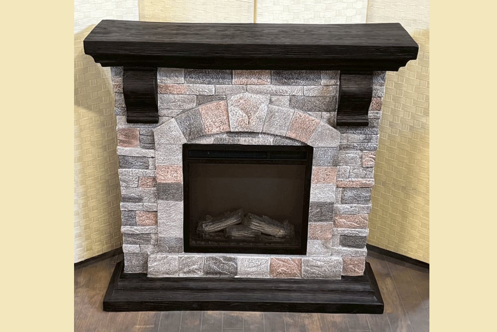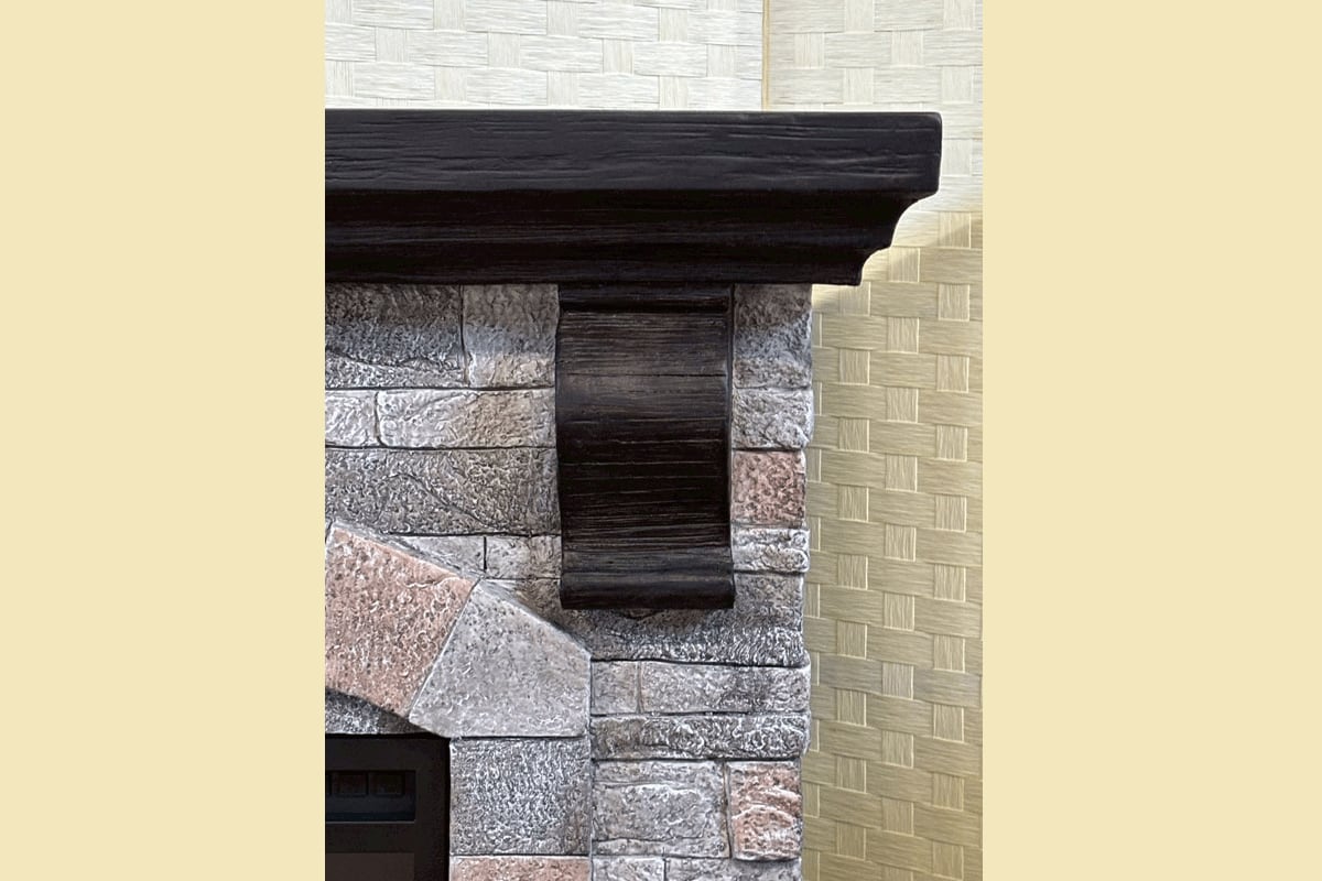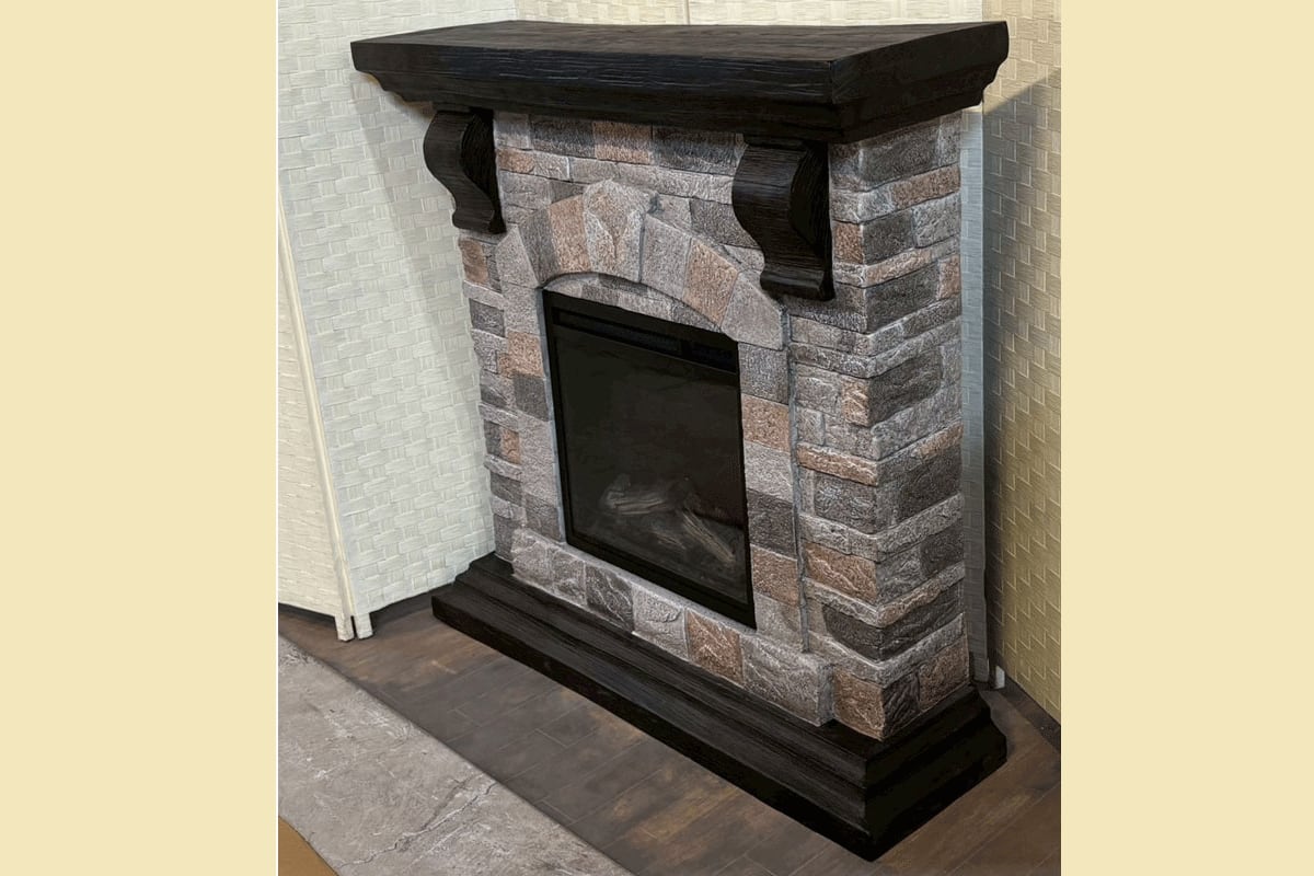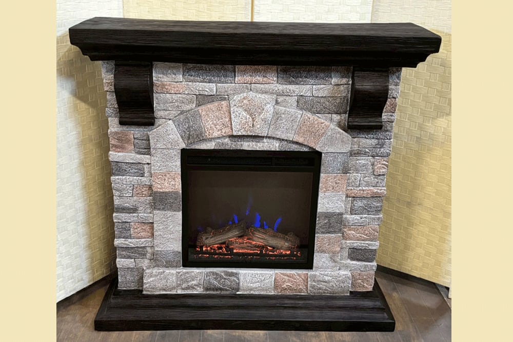 石組み風の重厚なデザインのマントルピースに、LED電球の光で作り出す炎が本物そっくりに揺らめきます。