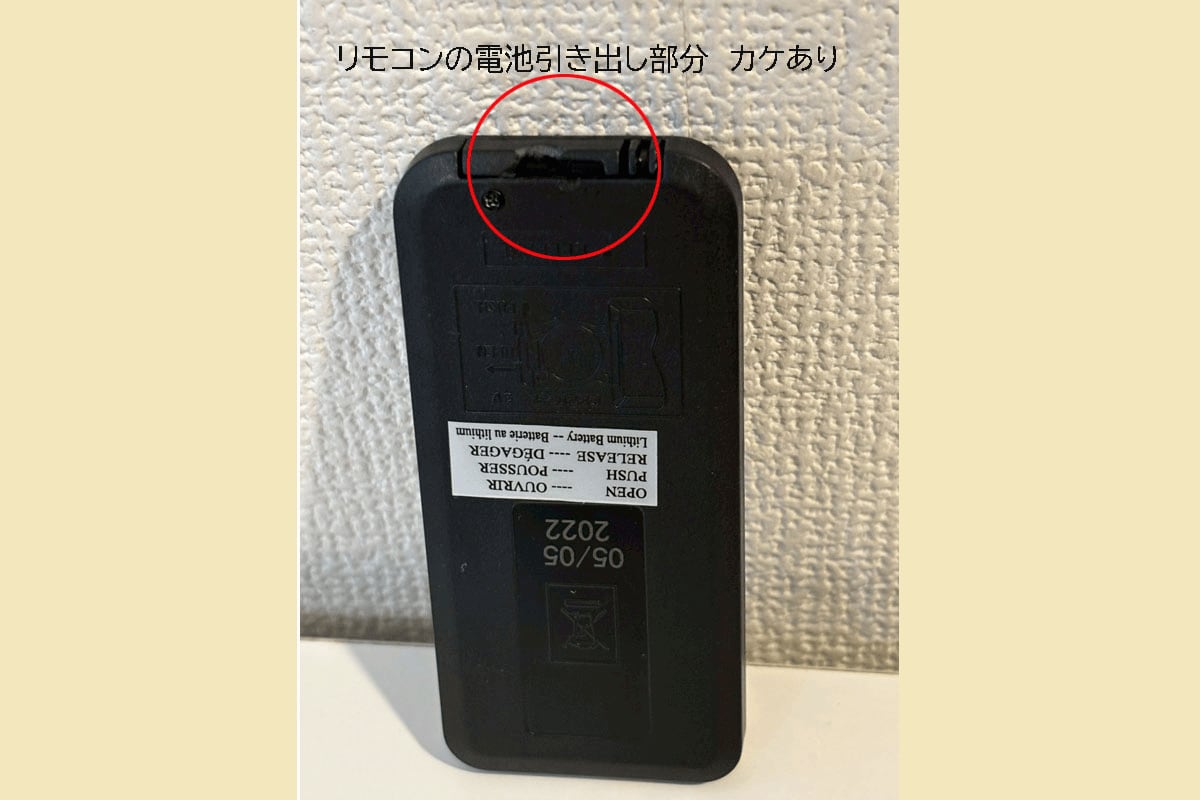 リモコンの一部に欠けているところがございますので、こちらも画像をご確認下さい。