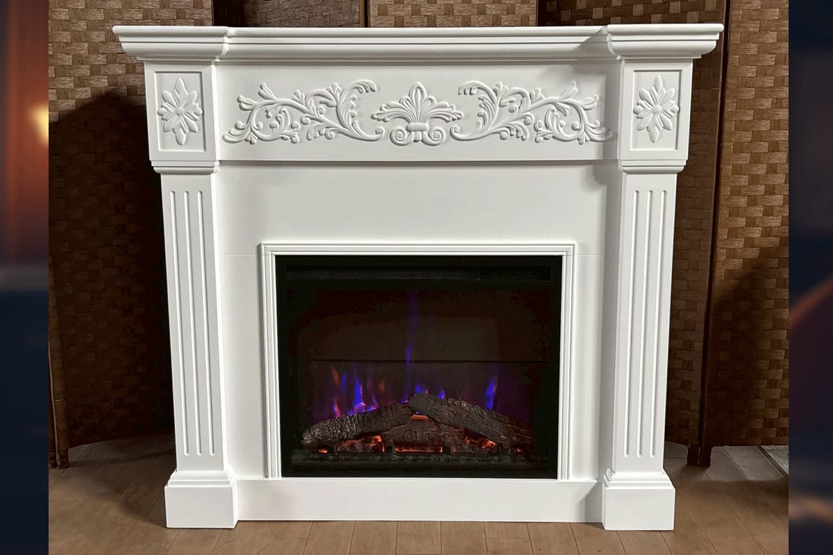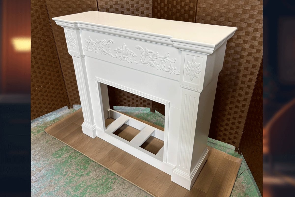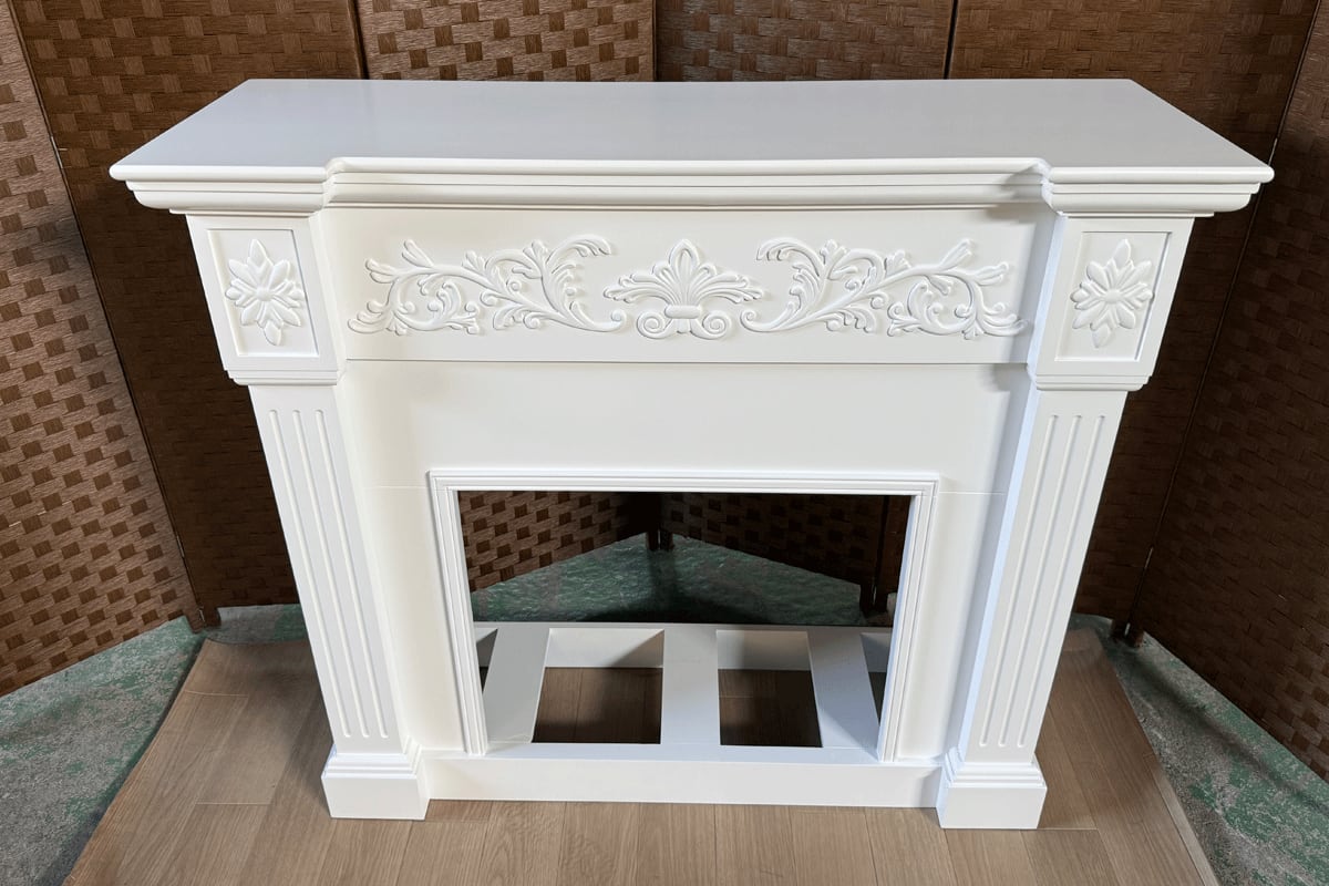 優雅な花柄彫刻が特徴のトラディショナルスタイルの電気暖炉です。