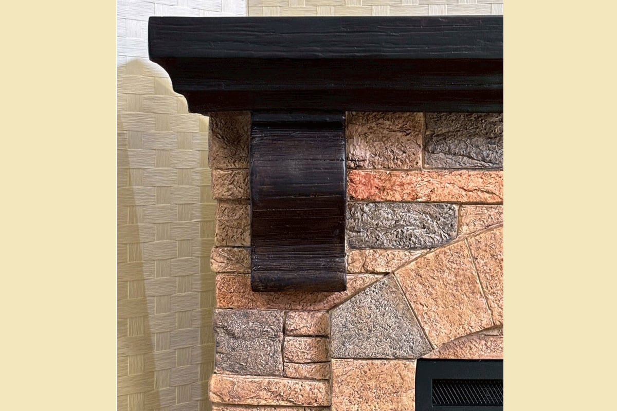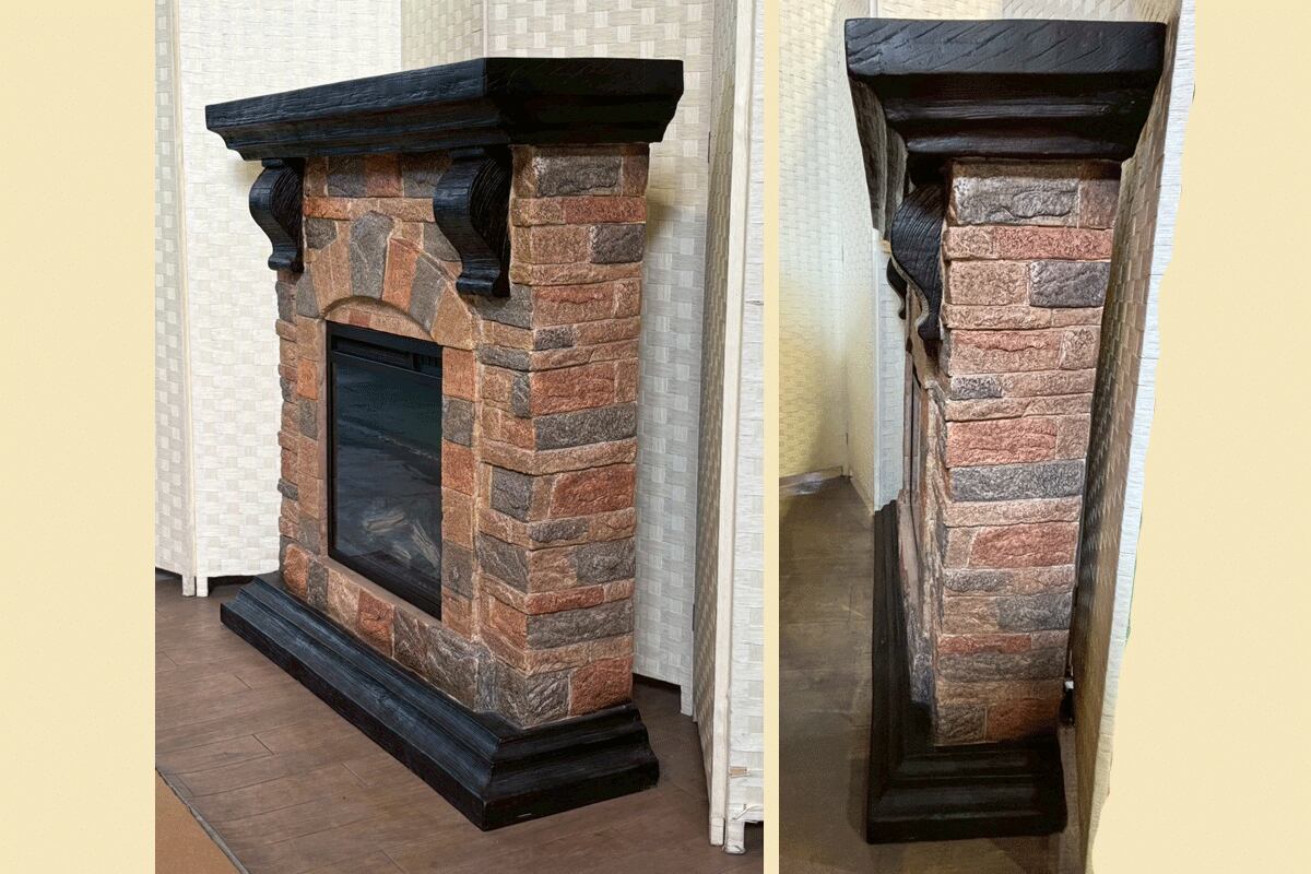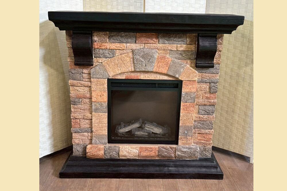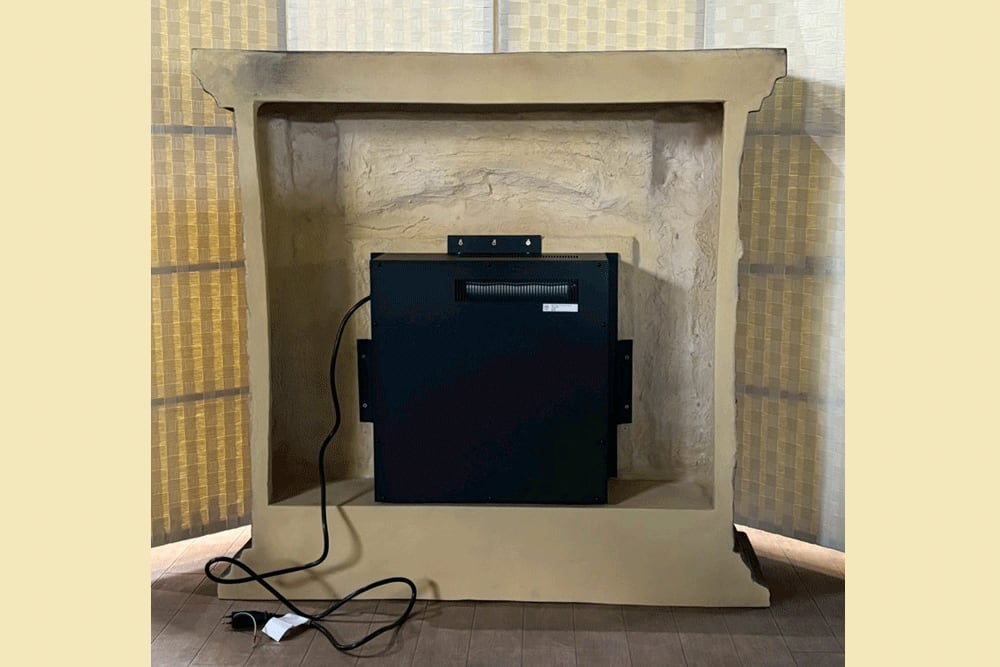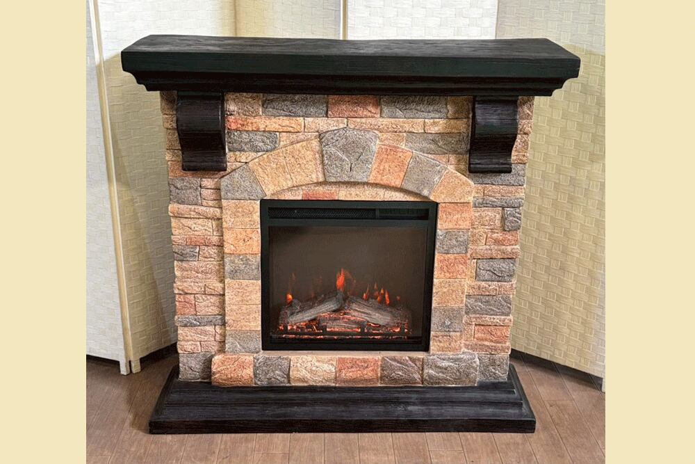 石組み風の重厚なデザインのマントルピースに、LED電球の光で作り出す炎が本物そっくりに揺らめきます。
