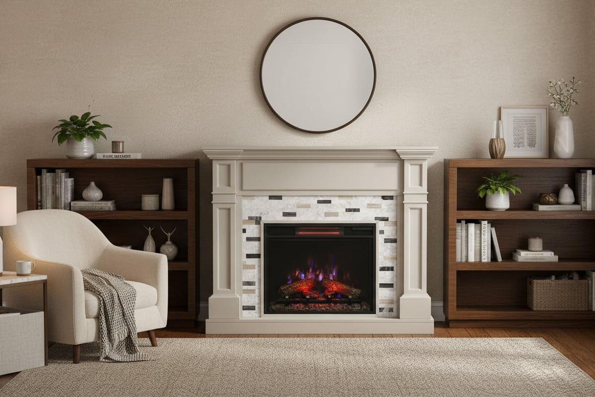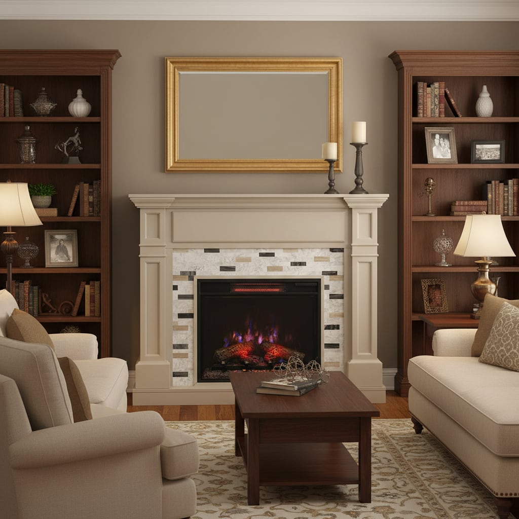 クラシックな造りで、居心地の良い外観を作り出し、暖炉周りの大理石が清潔でモダンな雰囲気を加えています。
