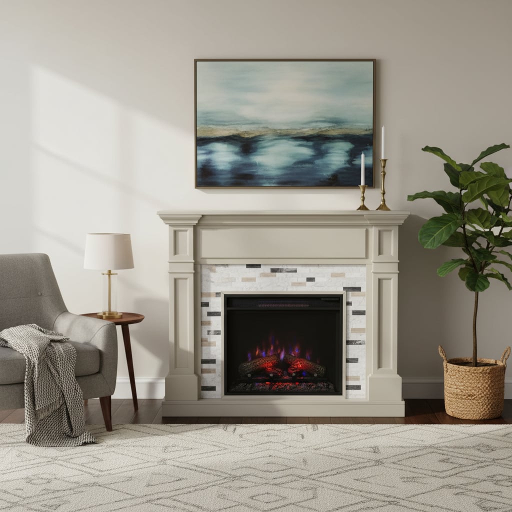 23インチ 電気暖炉 ビルクオーバー グレー&ブラック・グレー・ホワイトマーブル / ロイドグランデ / 送料、開梱・組立・設置無料 / LLOYD GRANDE / ハイグレード電気暖炉シリーズ