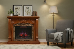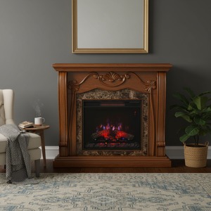 優雅なビクトリア調のデザインのウォールナット仕上げとブラウンマーブルの組合せが豪奢な電気暖炉です。