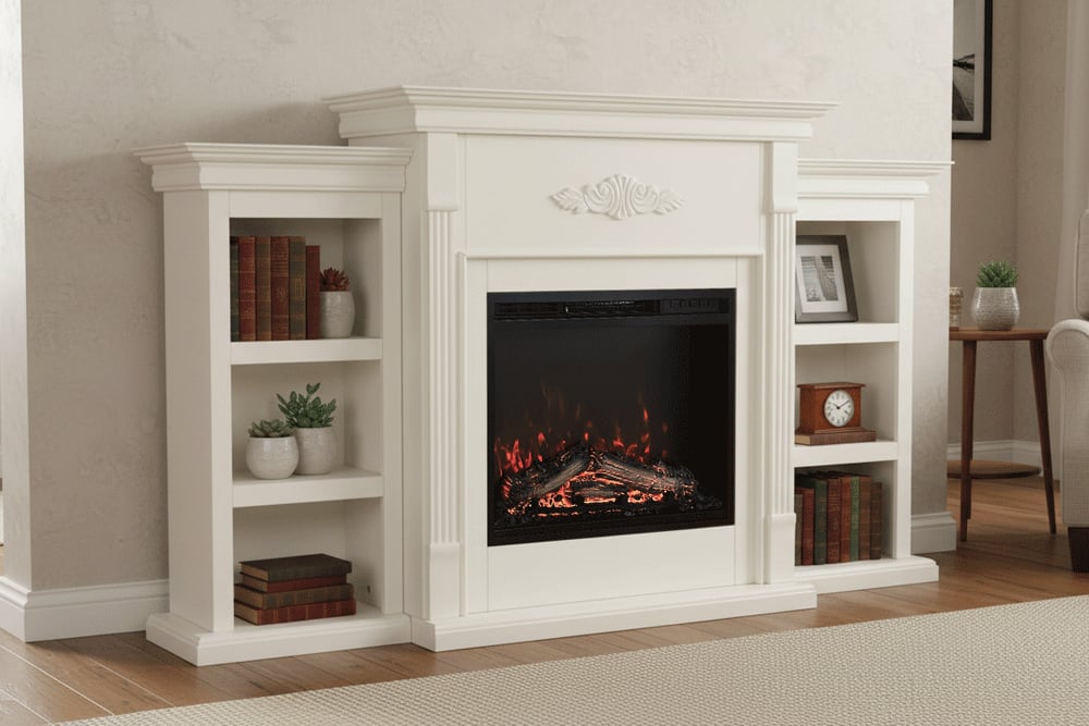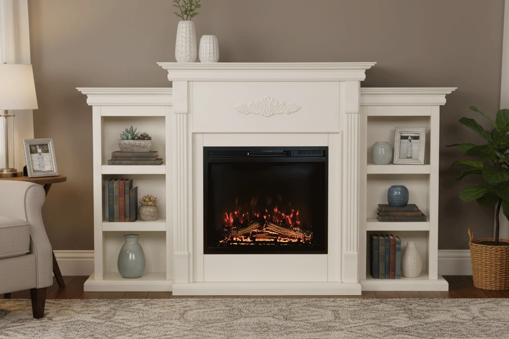 23インチ 電気暖炉 テニソン アイボリー (ブックケース付き) / ロイドグランデ / 送料、開梱・組立・設置無料 / LLOYD GRANDE / ハイグレード電気暖炉シリーズ