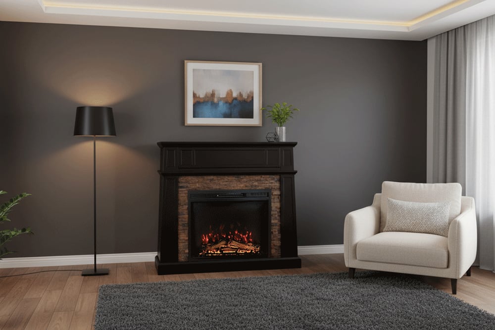 23インチ 電気暖炉 クレストウィック ブラック&メサヴェルデストーン / ロイドグランデ / 送料、開梱・組立・設置無料 / LLOYD GRANDE / ハイグレード電気暖炉シリーズ