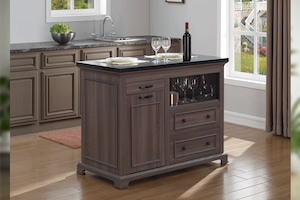 グラニット(花崗岩)の天板と家具調キャビネットのキッチンアイランドです。キッチンで必要な様々なアイテムが収納できます。